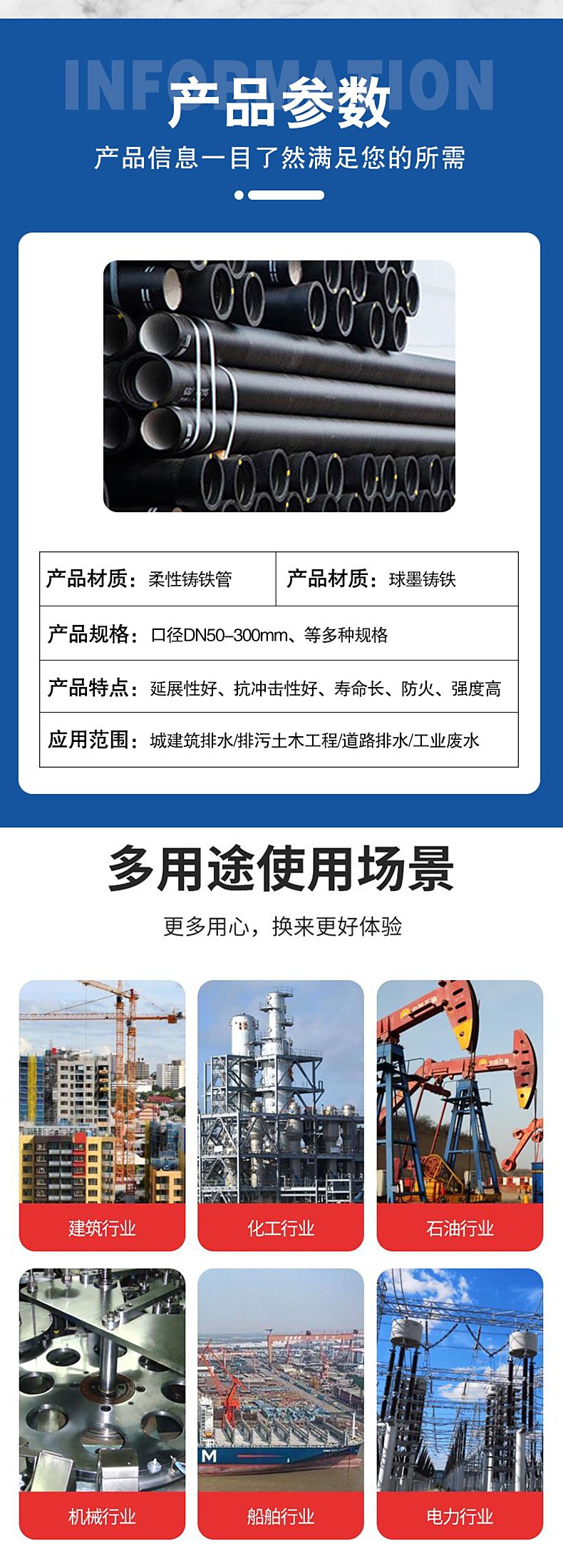 污水市政球墨铸铁管K9工程建设用柔性球墨铸铁DN250厂家